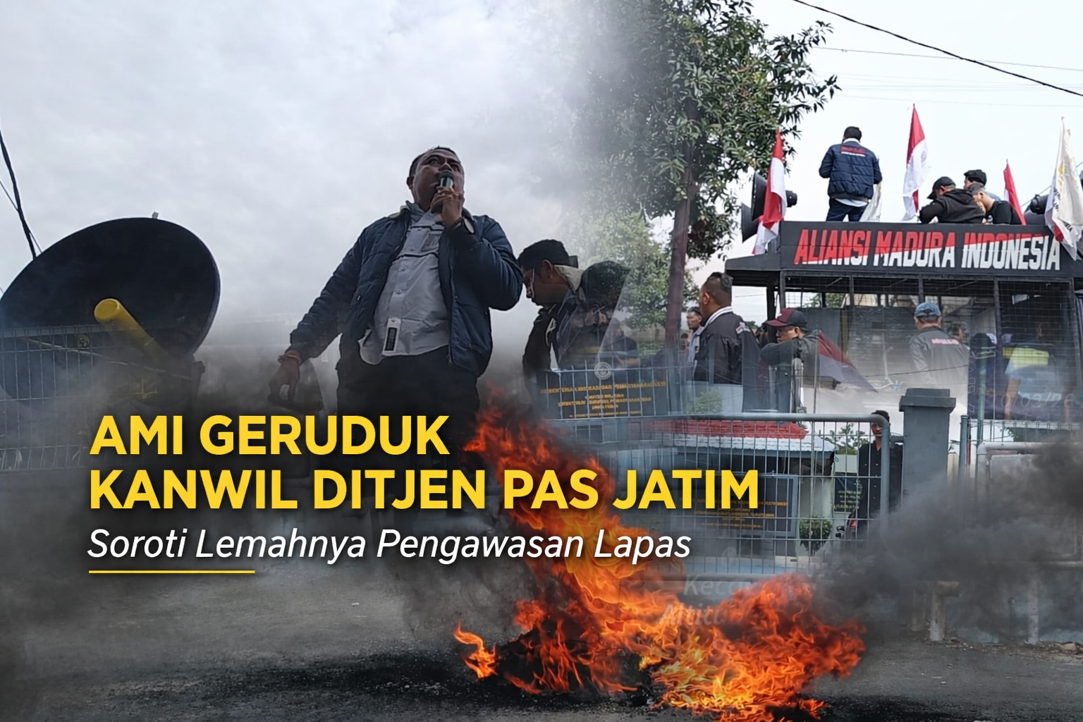 TINTAJURNALISNEWS –Puluhan massa yang tergabung dalam Aliansi Madura Indonesia (AMI) menggelar aksi unjuk rasa di depan Kantor Wilayah Direktorat Jenderal Pemasyarakatan (Ditjen PAS) Jawa Timur, Selasa (10/2/2026). Aksi tersebut digelar sebagai bentuk protes terhadap dugaan lemahnya pengawasan dan kinerja petugas pemasyarakatan di sejumlah Lembaga Pemasyarakatan (Lapas) di Jawa Timur.
