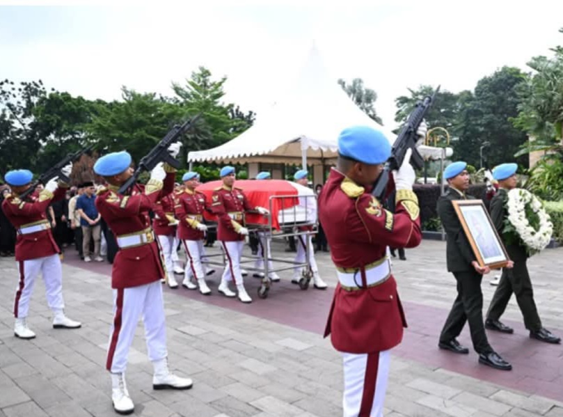 Bentuk penghormatan terakhir, Presiden Republik Indonesia, Prabowo Subianto, memimpin langsung upacara pemakaman kenegaraan yang digelar di Taman Makam Pahlawan Nasional Utama Kalibata [Dok. Setkab RI]