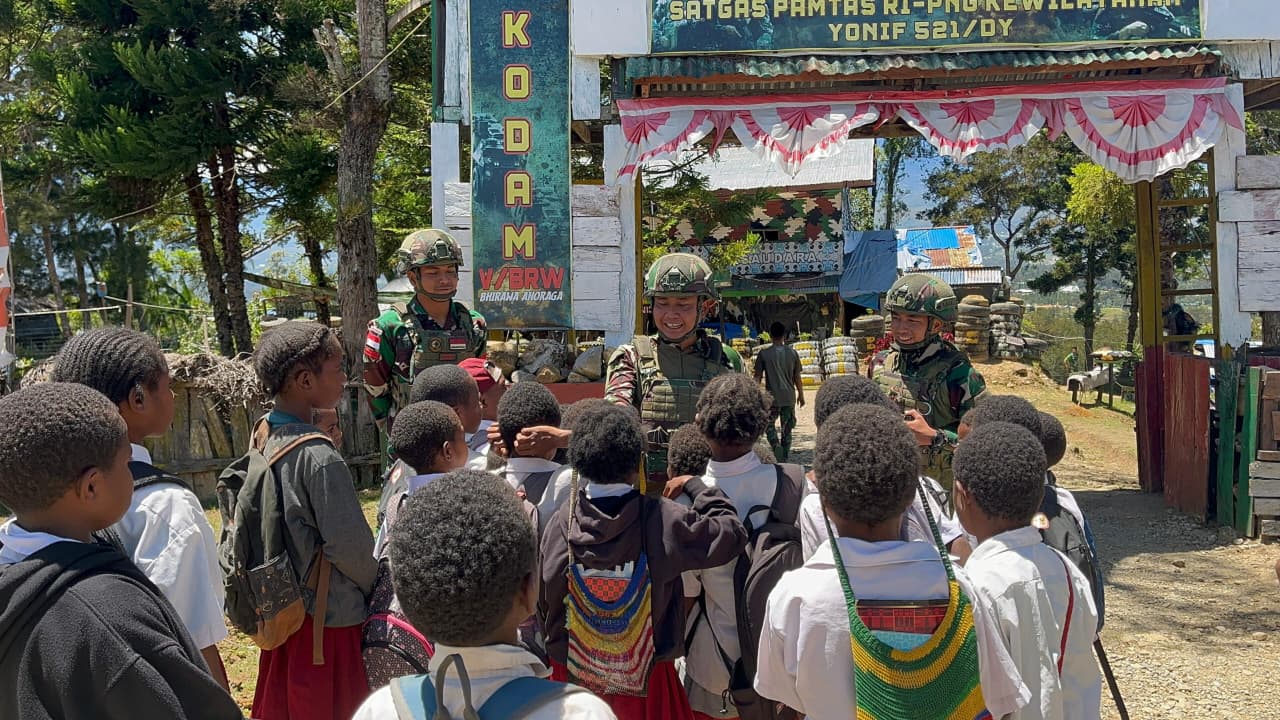 TINTAJURNALISNEWS –Komitmen TNI dalam mendukung pendidikan di wilayah penugasan kembali ditunjukkan oleh Satgas Yonif 521/DY melalui kegiatan pembinaan teritorial (Binter) dengan membagikan buku kepada anak-anak di Distrik Napua, Rabu (16/4/2026).