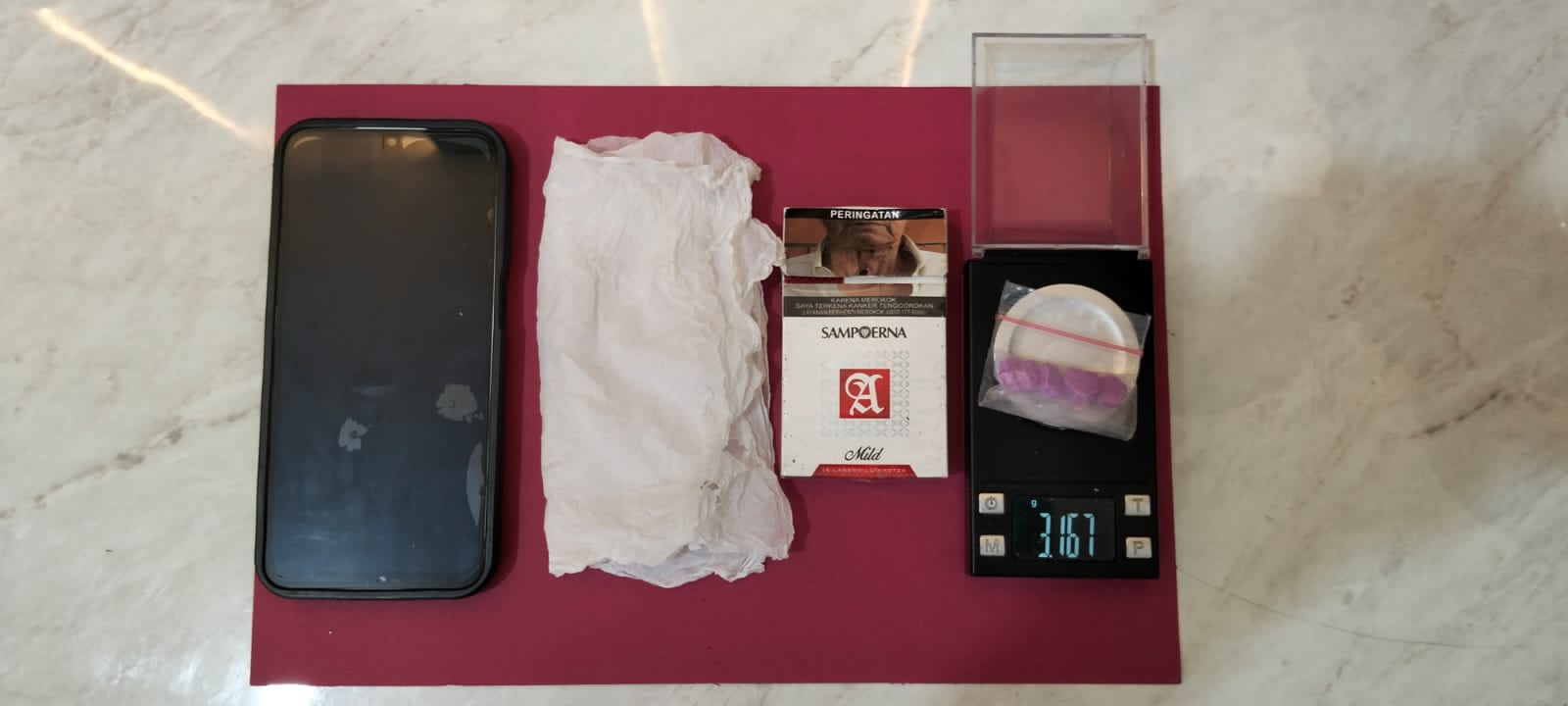“Dari hasil penggeledahan di kamar pelaku, ditemukan barang bukti berupa 6 butir pil ekstasi berwarna ungu, 1 lembar tisu, 1 bungkus rokok, serta 1 unit handphone,” jelas Kapolsek.