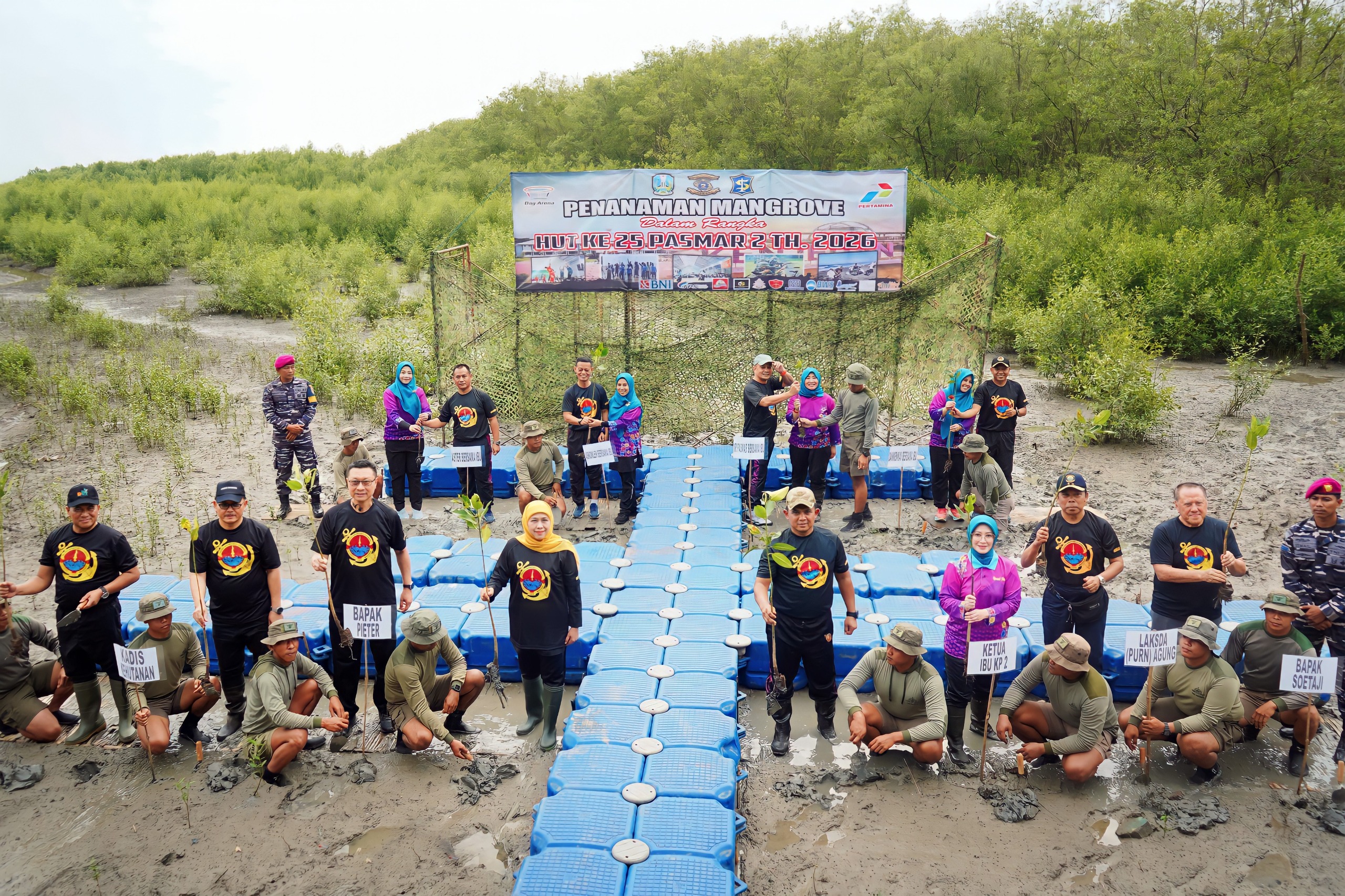 TINTAJURNALISNEWS —Dalam rangka memperingati Hari Ulang Tahun (HUT) ke-25, Pasmar 2 menunjukkan kepedulian nyata terhadap lingkungan dengan menggelar kegiatan penanaman mangrove dan aksi bersih-bersih pantai di kawasan Pantai Kenjeran, Surabaya, Jumat (27/3/2026).
