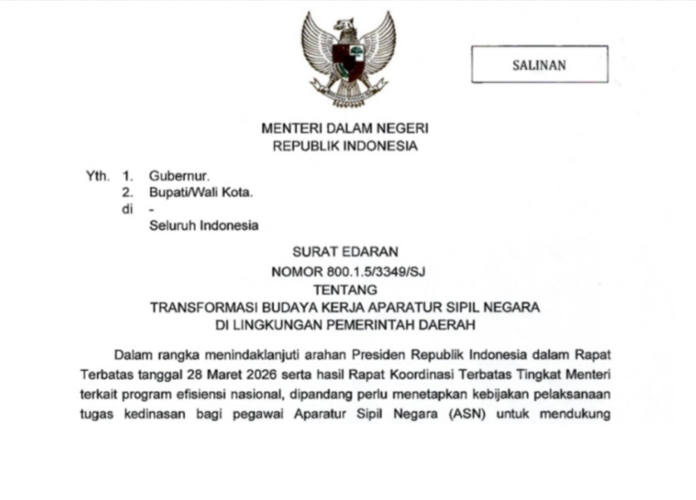 Selain itu, kepala daerah diminta menghitung potensi efisiensi anggaran dari penerapan pola kerja baru ini. Hasil penghematan tersebut dapat dialokasikan untuk mendukung program prioritas di masing-masing daerah.