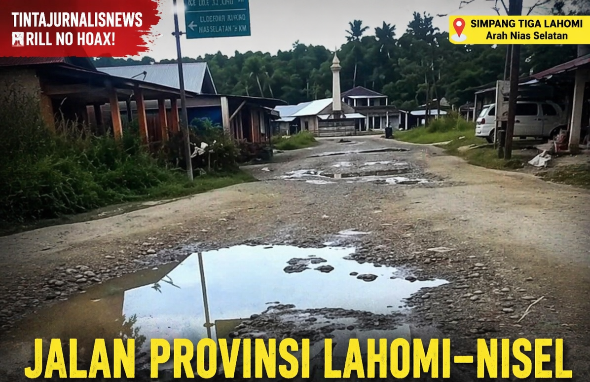 TINTAJURNALISNEWS —Kondisi jalan provinsi di wilayah Sumatera Utara yang menghubungkan Simpang Tiga Lahomi menuju Nias Selatan kembali menjadi sorotan. Sejumlah titik jalan dilaporkan mengalami kerusakan cukup parah dan dinilai membahayakan pengguna jalan.