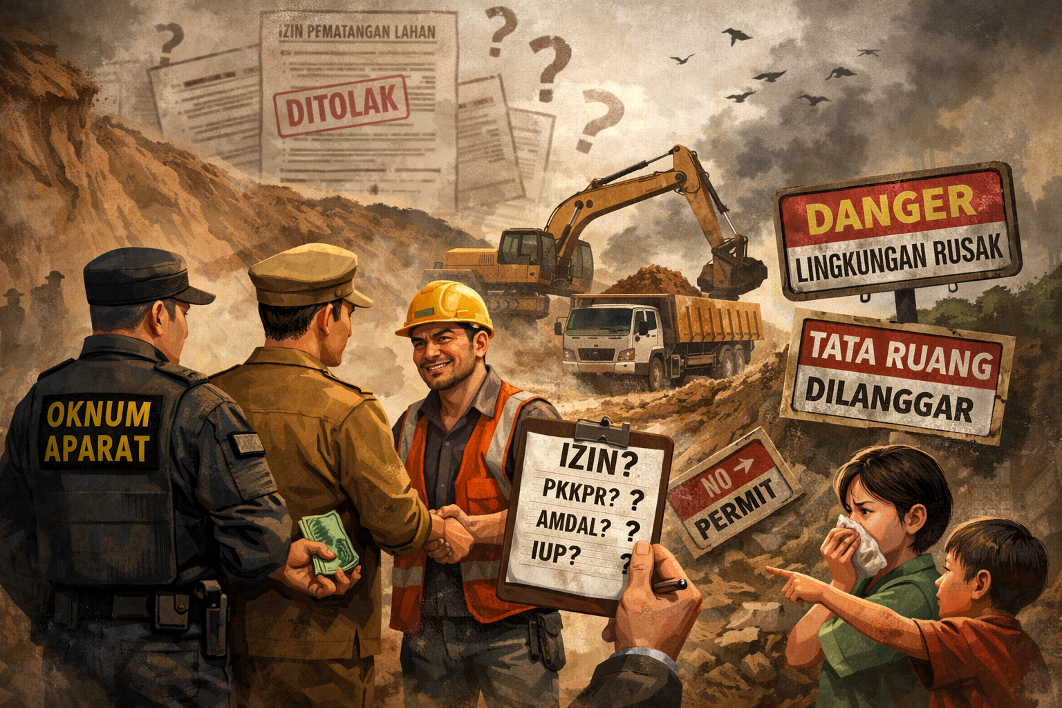 Menurut sumber, aktivitas tersebut tetap berjalan meski kelengkapan perizinan, seperti PKKPR, AMDAL/UKL-UPL, dan izin pematangan lahan, masih dipertanyakan. Apabila material tanah hasil galian dijual, kegiatan ini bahkan bisa masuk kategori pertambangan yang memerlukan IUP.