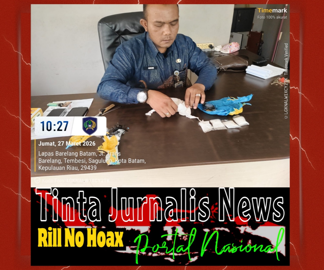 TINTAJURNALISNEWS –Kewaspadaan petugas kembali membuahkan hasil. Lembaga Pemasyarakatan (Lapas) Batam berhasil mengamankan bungkusan mencurigakan yang diduga berisi narkotika di area branggang Blok D, Jumat (27/3/2026) pagi.