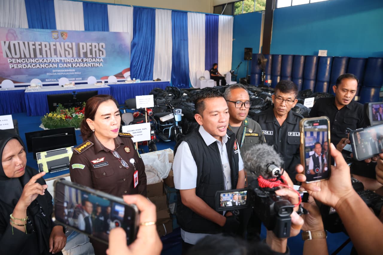 Kasus ini dipimpin langsung oleh Kasubdit I Indagsi Ditreskrimsus Polda Kepri, AKBP Paksi Eka Saputra, S.IP., S.I.K., M.M., didampingi Kaurpenum Subbidpenmas Bidhumas Polda Kepri, AKP Tigor Sidabariba, S.H. Turut hadir Jaksa Fungsional Pidum Kejati Kepri Rumondang Manurung, S.H., serta perwakilan Balai Karantina Hewan, Ikan dan Tumbuhan Kepri, Wasis Prihartono, S.P.