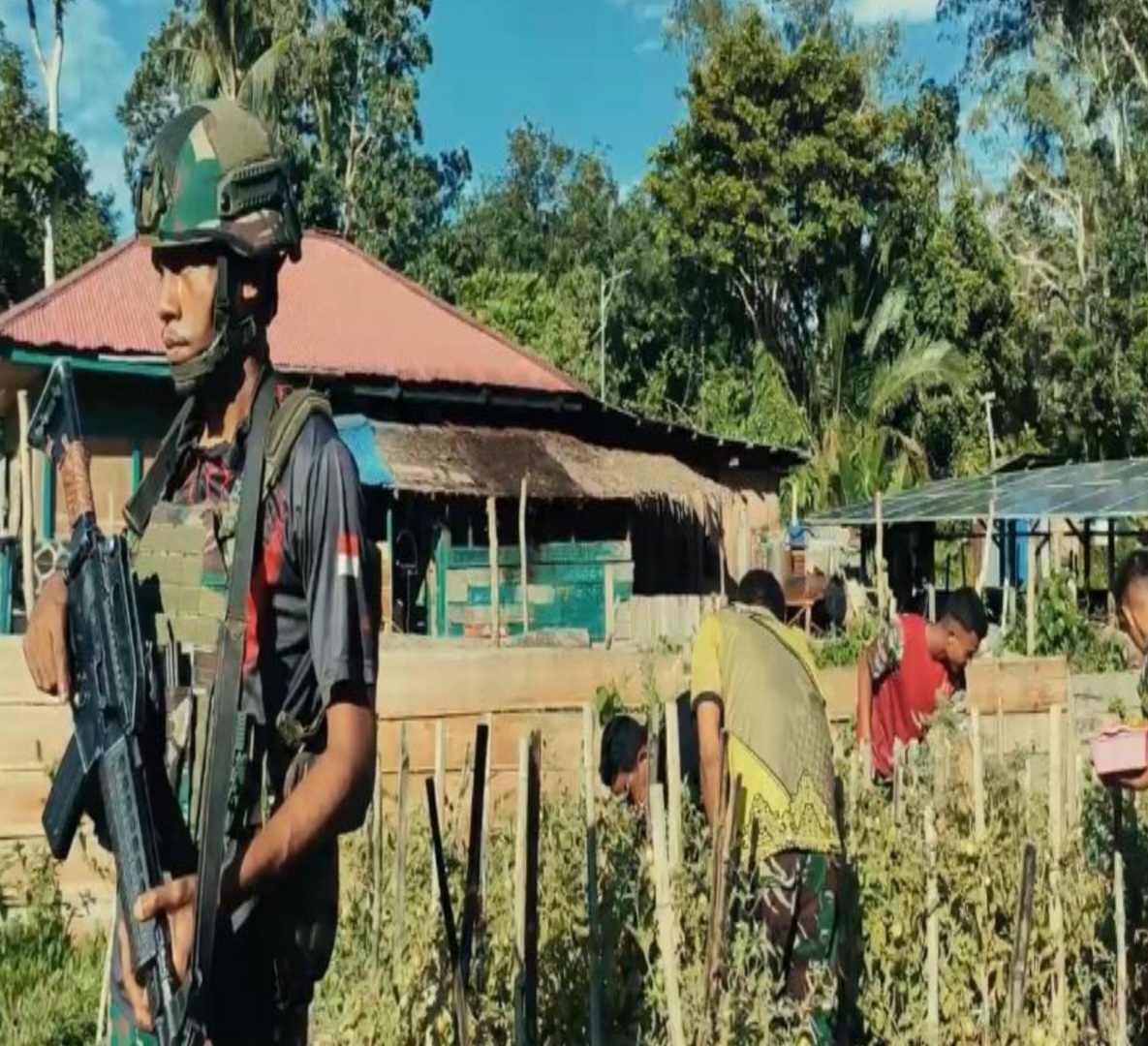 TINTAJURNALISNEWS —Satgas Pamtas RI-PNG Yonif 763/SBA Pos Kokoda kembali menunjukkan kepeduliannya terhadap masyarakat sekitar dengan berbagi hasil panen dari kebun Pos, Selasa (22/10/2025).