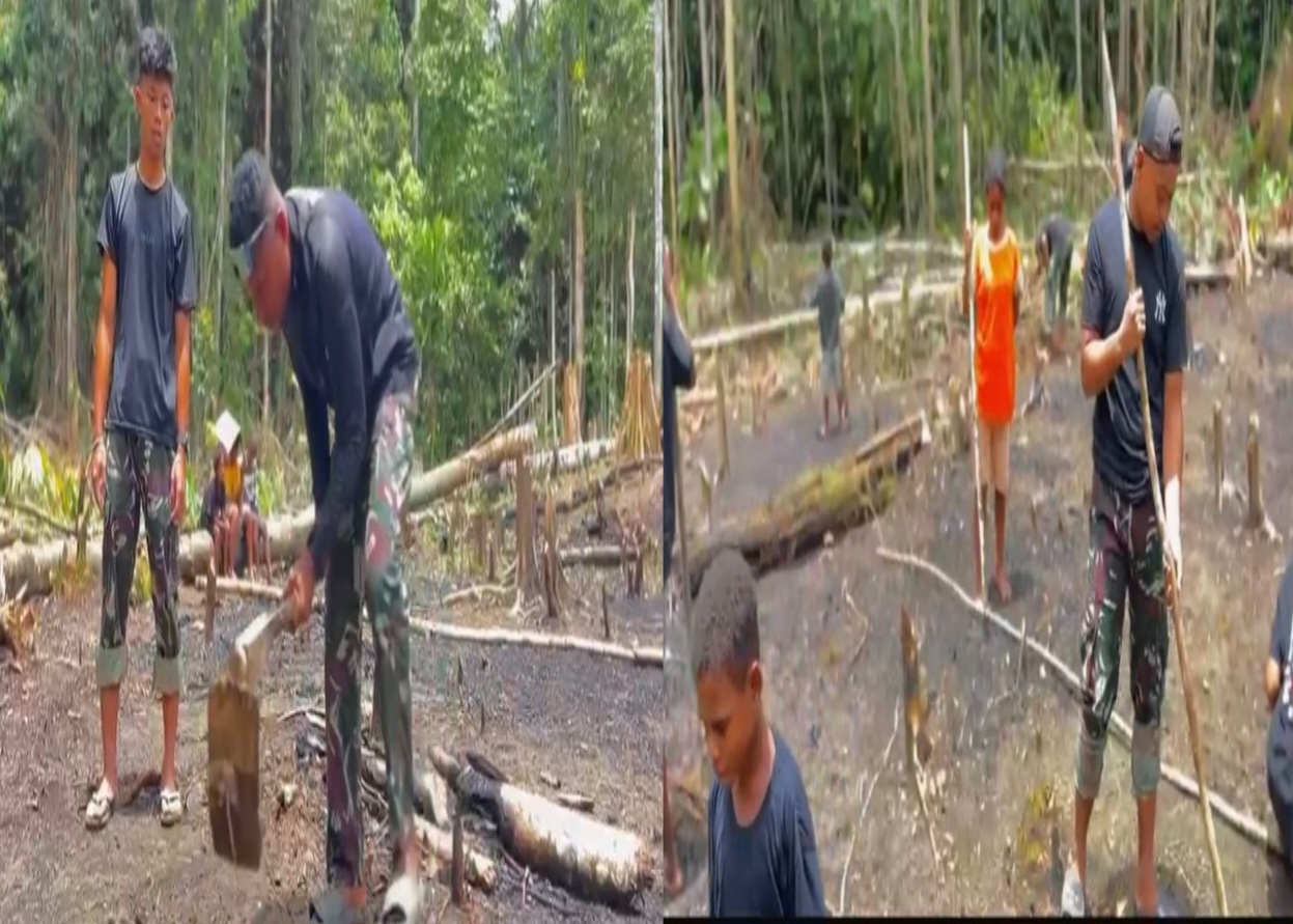 TINTAJURNALISNEWS -Dalam semangat mempererat kebersamaan dan mendekatkan diri kepada masyarakat, personel Satgas Pamtas RI-PNG Kewilayahan Yonif 763/SBA Pos Joshiro menggelar kegiatan pembuatan lahan pertanian bersama warga Kampung Joshiro, Kabupaten Sorong Selatan, Papua Barat Daya, dalam rangka memeriahkan Hari Ulang Tahun ke-80 Tentara Nasional Indonesia (TNI), pada 5 Oktober 2025.